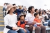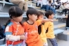 「えどりくは近いので自転車でよく応援に来ています」という市川市のグループ。子ども同士仲が良いので、2家族で一緒に観戦するのが定番行事だそうです。「子どもたちが歩き回っても迷惑にならないよう、端の席を選んでいる」とお子様連れならではの観戦スタイルを語ってくれました。