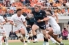 前半は、お互いに譲らない展開。先制はブレイブルーパスでしたが、スピアーズもバーナード・フォーリー選手のキックでコツコツと得点を重ね、前半を終えて6対8。まだまだ分からない緊張感あるスコアで折り返します。