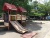 『ドンキ側にブランコ、砂場、ロープの遊具、小さい子向けの滑り台などがあり、スーパー(コモディイイダ)側にターザンロープ、回転塔、平均台、大きな滑り台の遊具があります。