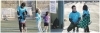 コーチの真似をして頭でボールストップ! 意外なポーズにみんな笑顔。